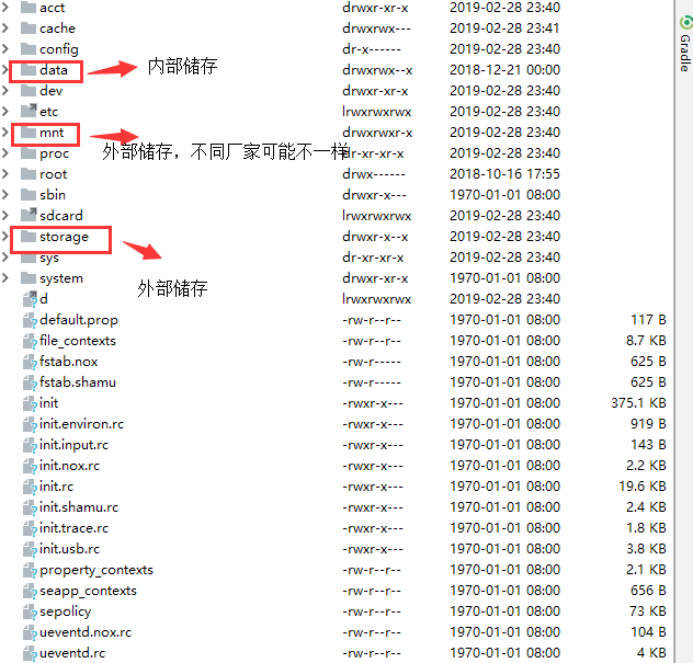- data/data/包名/cache:缓存文件,手机内存不足时,会自动删除这里的数据。
