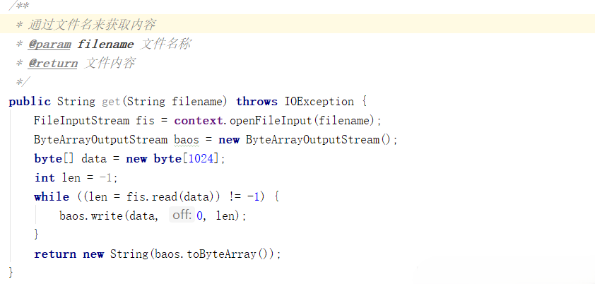 - (1)调用openFilelnput(String filename),参数中填入文件名,会返回一个FileInputstream对象。