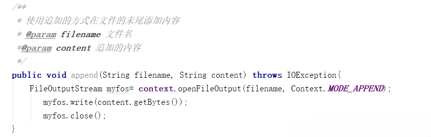 FileOutputStream myfos= context.openFileOutput(filename, Context.MODE_APPEND);