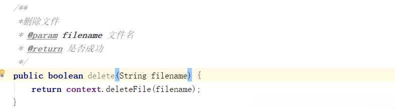 - boolean deleteFile(String name)删除一个指定文件名为name的文件。