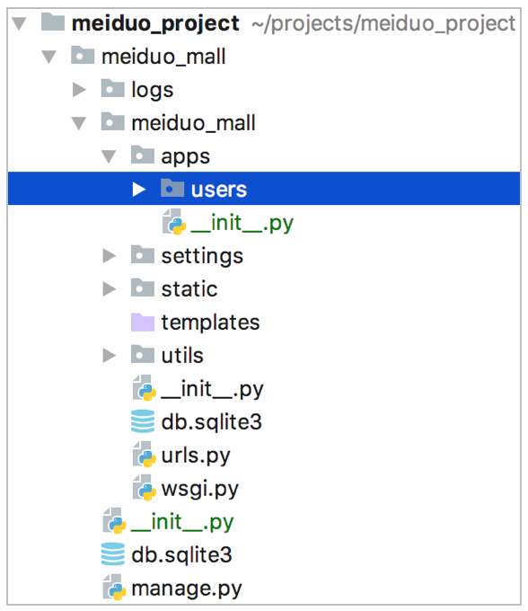 得到导入'users'应用的导包路径是:meiduo_mall/apps/users
