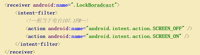 静态:AndroidMainFest中的application标签下加上receiver的子标签(此注释只是一种比喻!!)