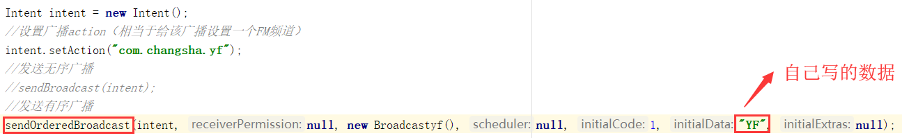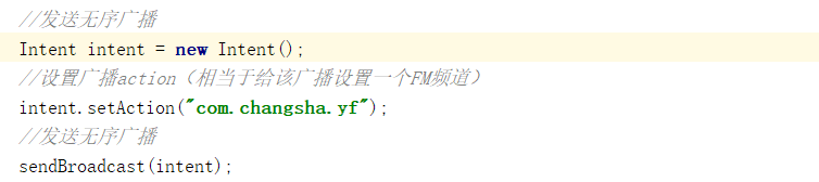 Intent intent = new Intent("com.changsha.yf.BroadcastReceiver");