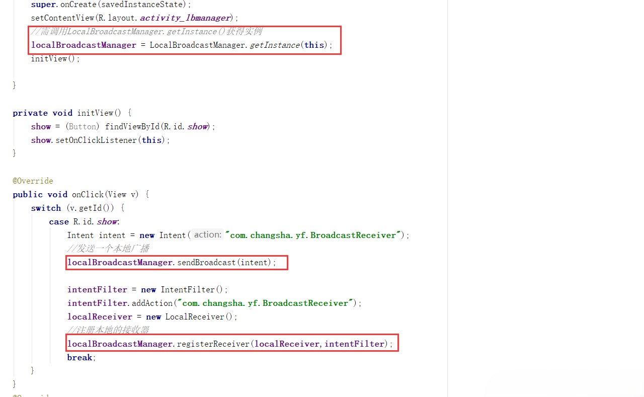同样,在发送广播时也需将context的的registerReceiver方法换成LocalBroadcastManager的registerReceiver方法