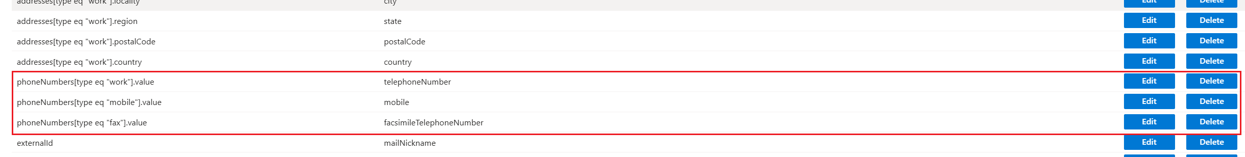 2. 找到PhoneNumber字段,只保留一个或者全部删掉即可(PhoneNumber在IAM身份中心不是必填字段,可以不同步此字段)