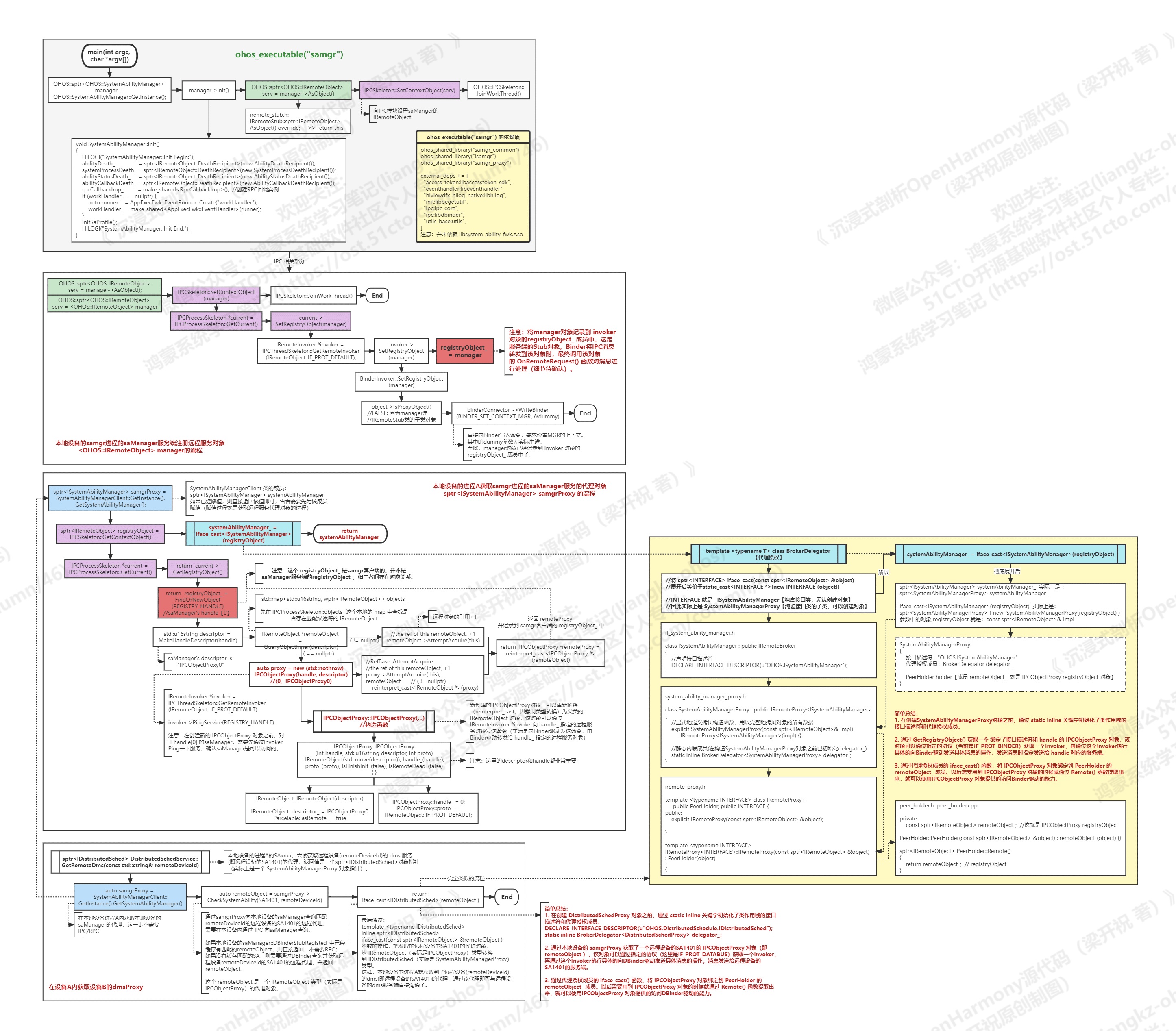 由于图中几个部分的关系错综复杂,我还没有整理出比较清晰的文字,所以,想深入理解OHOS的IPC实现细节的小伙伴,请结合上图阅读代码自行理解一下,有疑问可以留言交流。