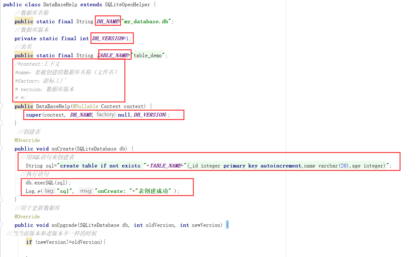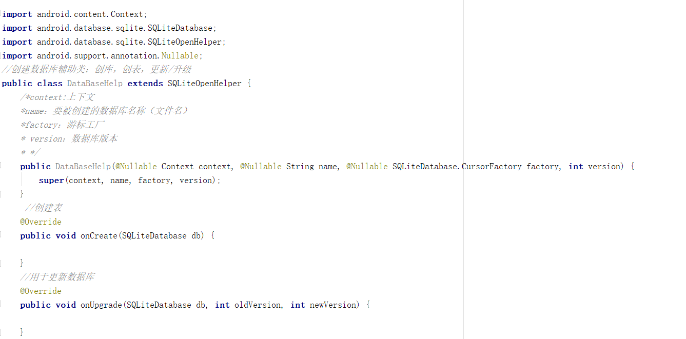 第一步,创建一个据库辅助类:只做三件事 (创库,创表,更新/升级)