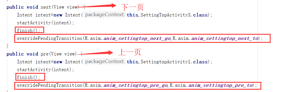 1.它必需紧挨着startActivity()或者finish()函数之后调用