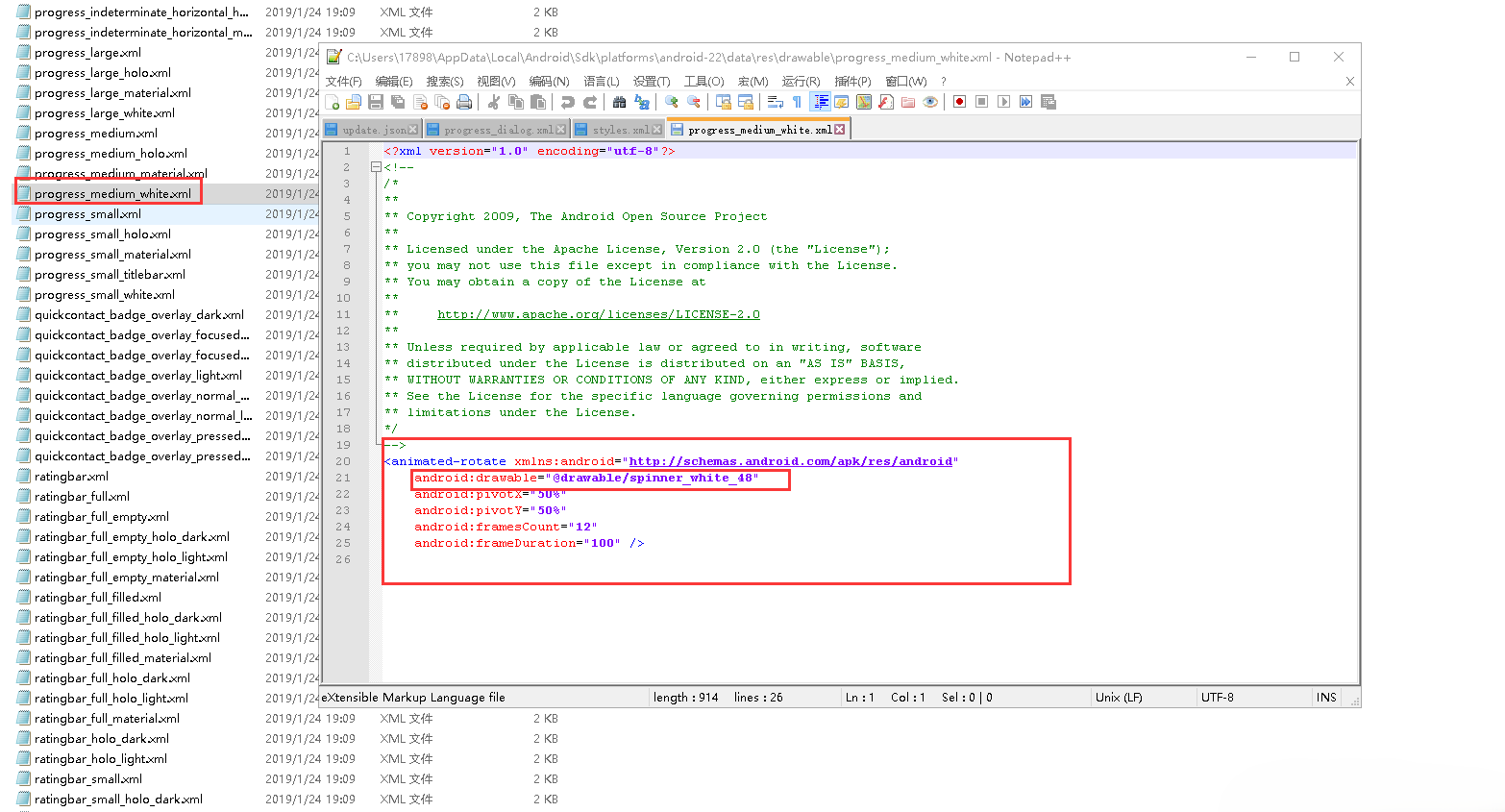 网上有一大堆的改变样式的方法:博主比较喜欢根据Android源码来改—>sdk