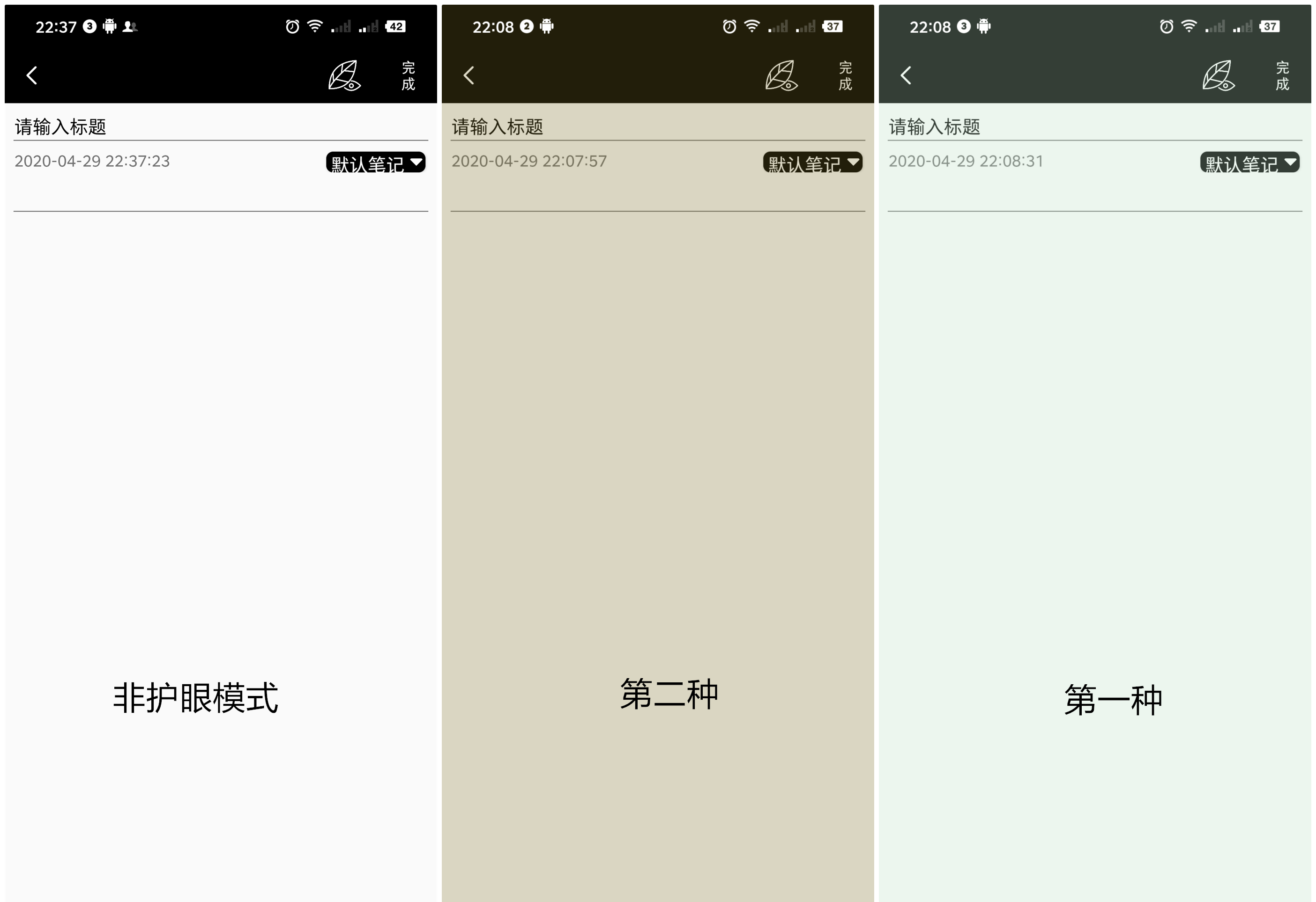 前提:护眼模式可以说是加一层某颜色且透明度小于1的view,现在网络上比较流行的护眼色博主比较喜欢以下两种。
