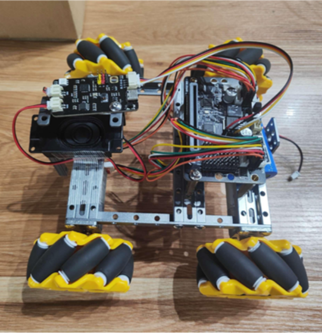 在功能实现方面,第一大亮点是四轴麦轮小车的实时运动控制。通过Python编写的控制算法,能够根据用户的输入指令(前进、后退、左移、右移、旋转等)计算出四个电机的输出功率,并发送给嵌入式系统,从而实现全方位移动。此外,系统还能实时接收嵌入式端上传的传感器数据,动态调整小车状态,确保运行平稳、响应迅速。