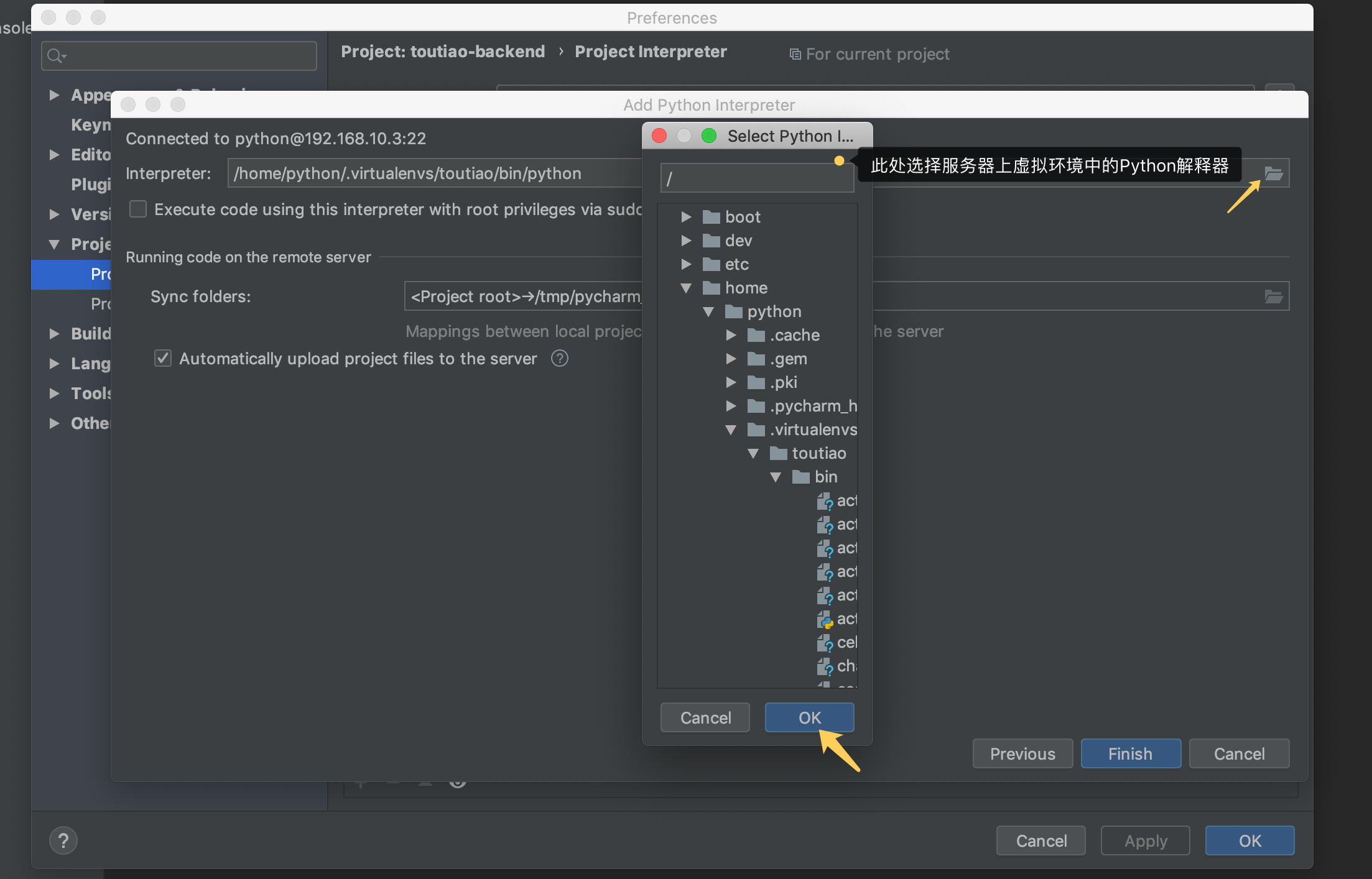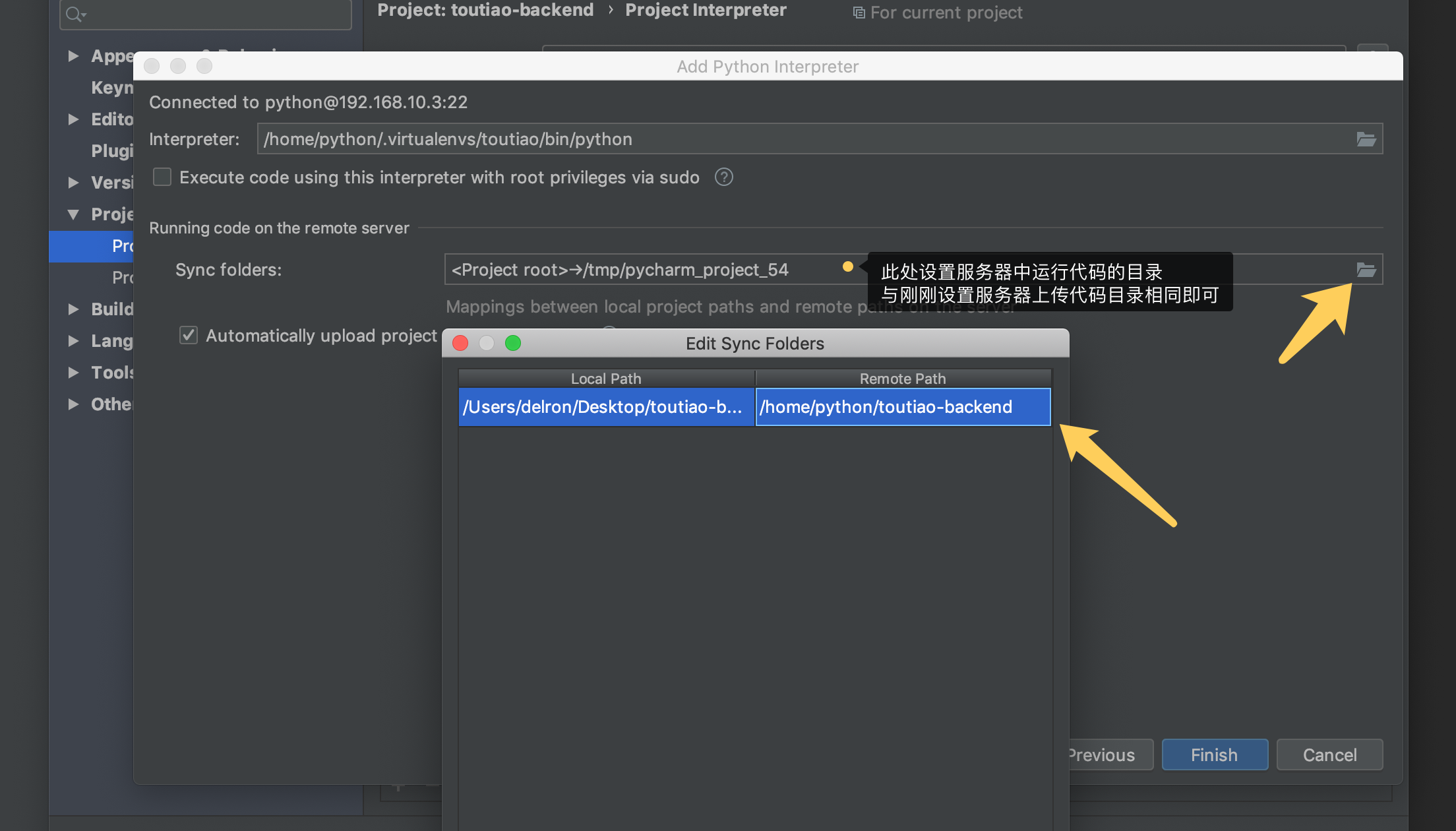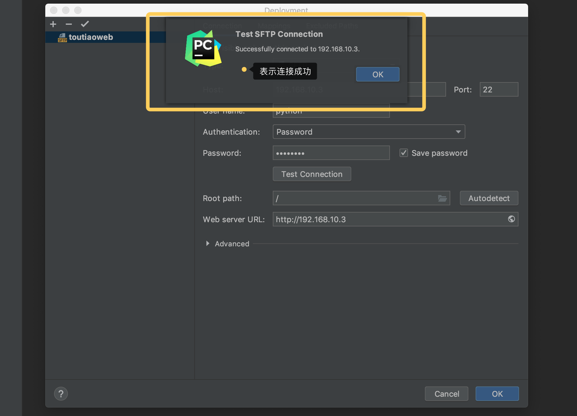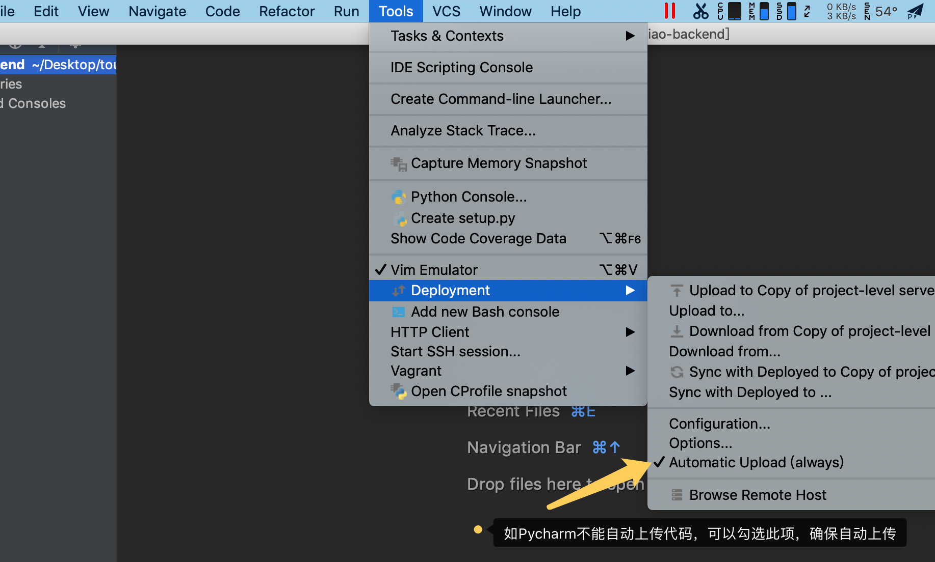 - 若Pycharm不能自动上传代码,可勾选Automatic Upload