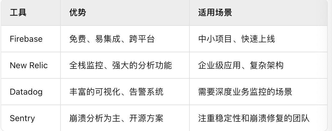 - Firebase Performance Monitoring:Google提供的跨平台方案