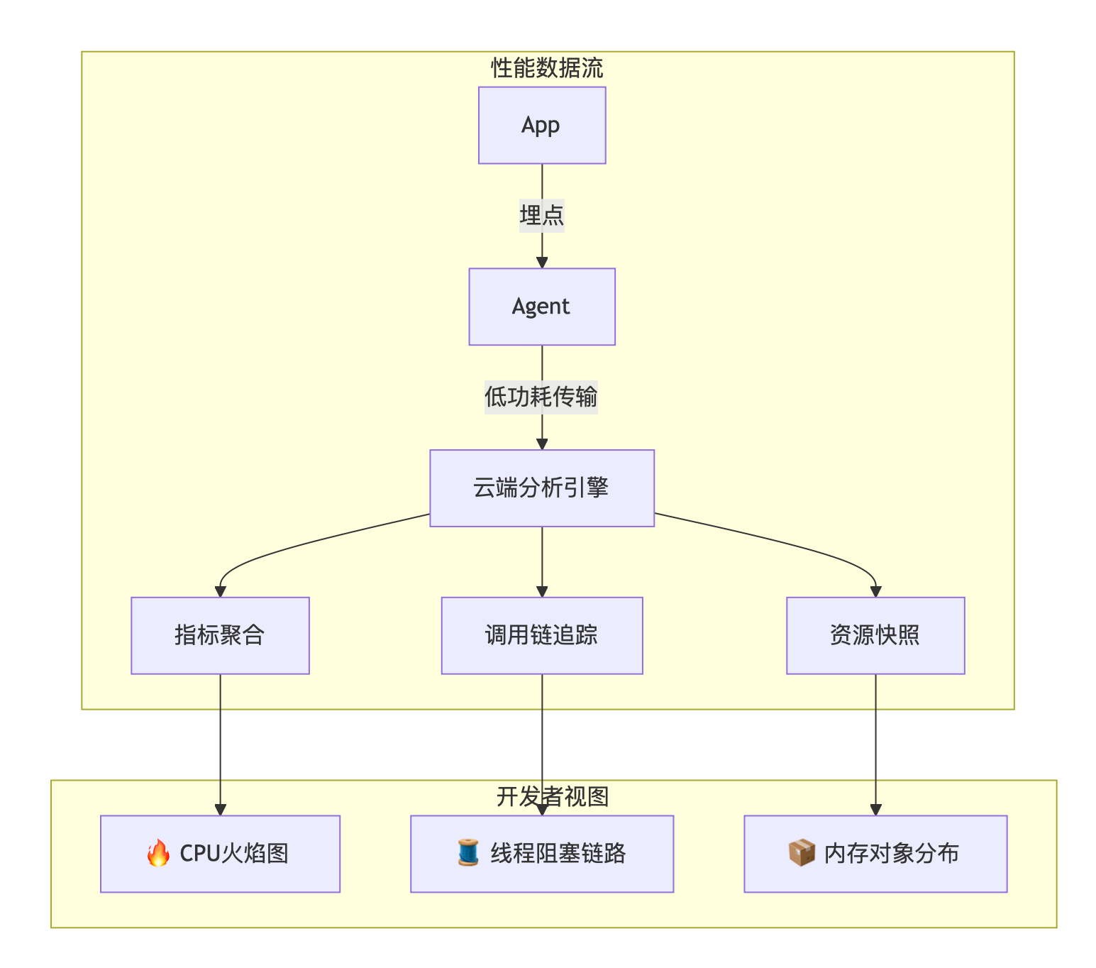 | 代码级性能分析 | 精准定位 for循环/递归 导致的性能劣化 |