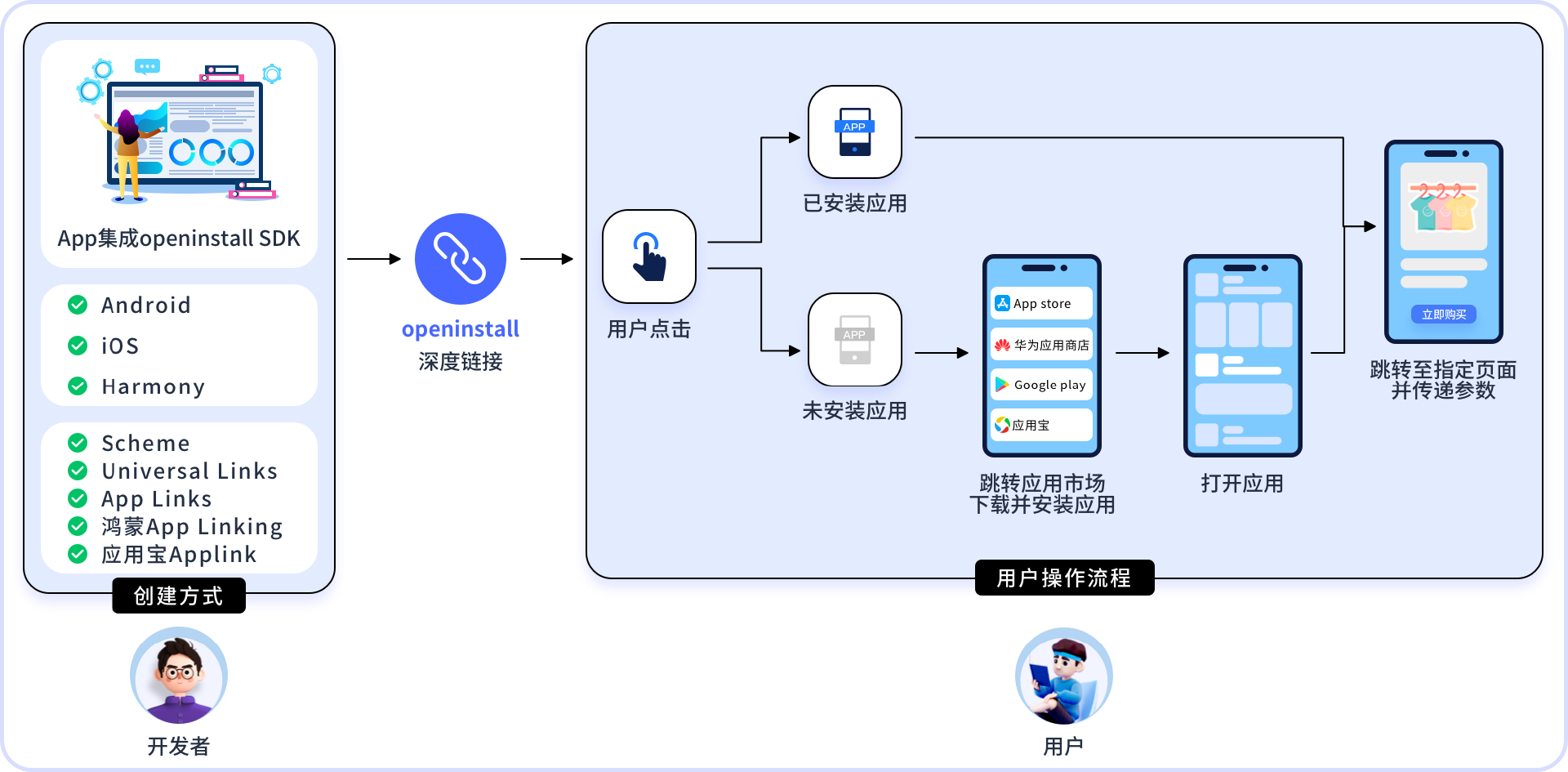 - 购车场景:通过openinstall的进行渠道监测和传参绑定,为每个线下经销商门店生成专属二维码,新车主扫码下载App,系统智能绑定邀请关系并跳转至车型详情页,触达效率更快更精准。