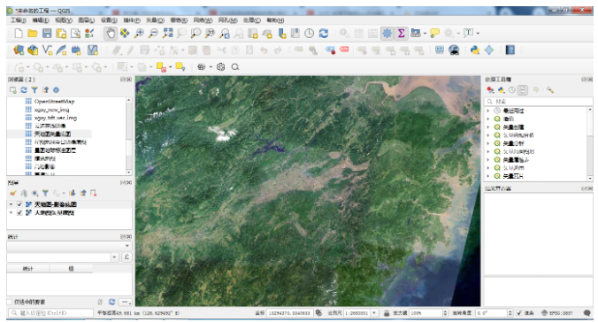 点击界面上的ok按钮后,对应的在线底图也会加载中央界面中,到此我们就已经实现了在Qgis当中进行在线图源的展示的需求。 看到的效果如下: