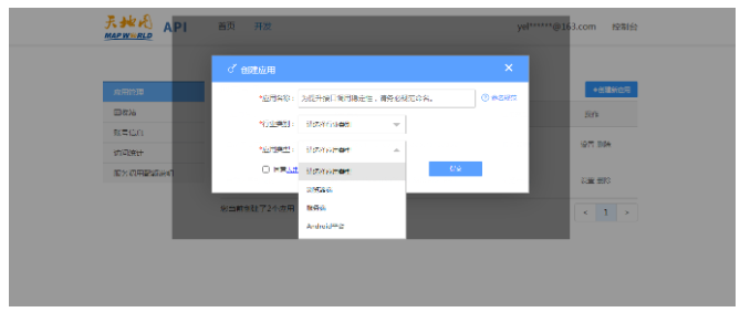 在创建应用的过程当中,根据页面的提示来进行创建即可,唯一需要注意的就是,应用的类型这里。主要包含三种浏览器端、服务端、Android平台。这其实分别代表了使用浏览器访问、后台接口模式(如使用java进行接口调用),以及移动端的调用。 在以前的天地图中,key是可以混用的,现在应用类型分开之后就需要分开,务必按照实际的应用来填写。填写完毕之后,系统会自动创建应用出来,里面包含了服务的类型,还有第三方的应用,如下图所示: