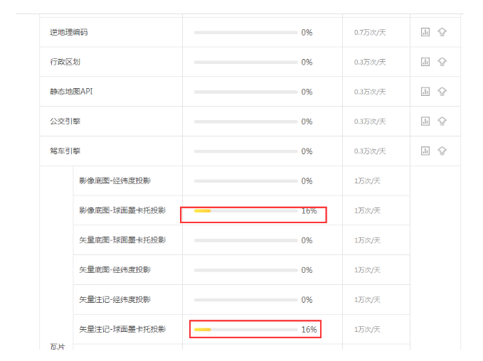 | 地图API | 影像底图 | 10000 | 3000000 | 5000000 |