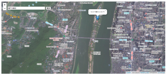 可以看到在界面中就出现了搜索栏,在搜索栏中输入我们需要查询的地名或者地址,点击查询按钮就会进入查询,比如我们查询橘子洲景区。点击查询可以跳转以下定位。