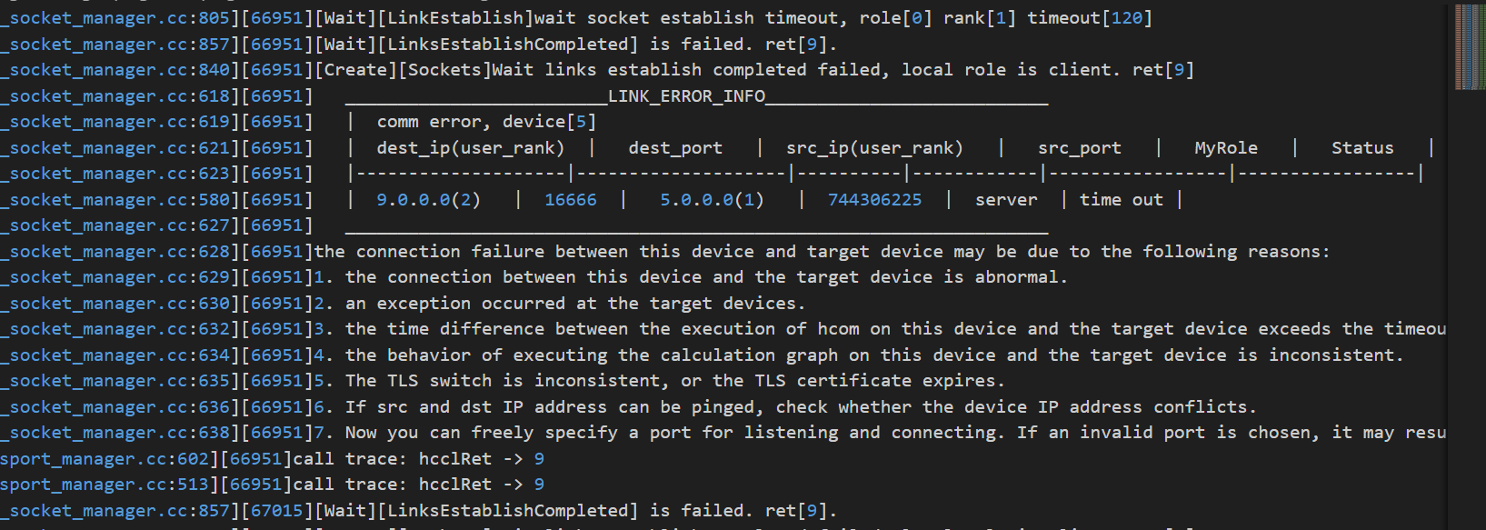 根据对端的user_rank找到对端的日志,若对端存在其他报错,需要先排查对端的报错原因。