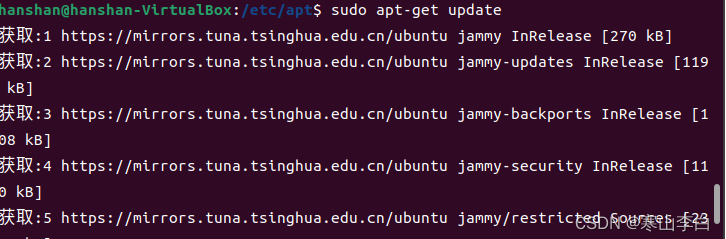 将sources.list内容修改为清华源后,在内容最上面一行加上下面这行代码(i进入插入模式,光标移动到第一行行首回车换行,第一行内容输入一下代码即可,Esc退出后:wq保存退出)