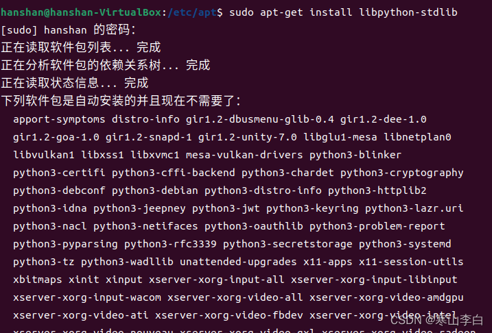 此时需要安装libpython-stdlib软件包解决依赖关系