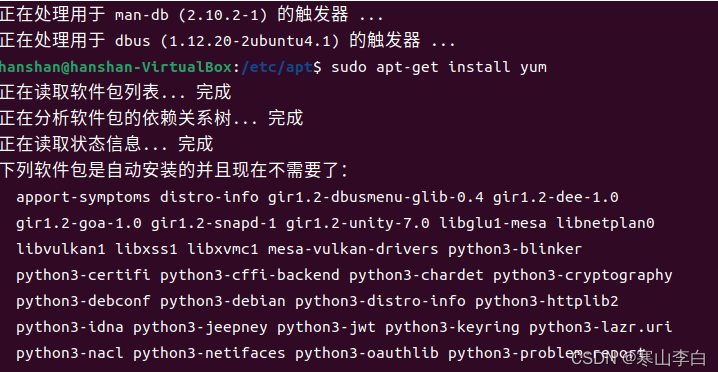 所以正常来说Ubuntu上直接使用apt命令就可以,不需要安装yum,不过非要使用yum也是可以安装使用的。