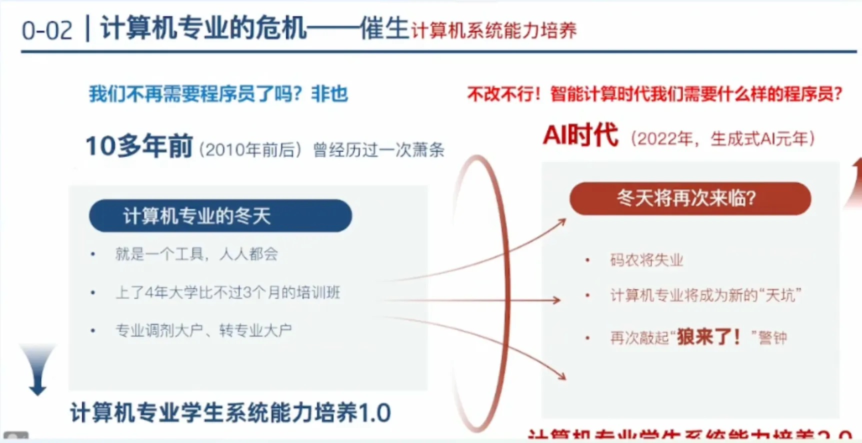 2022年,被称为“生成式AI元年”。然而,伴随着“计算机专业将成为新天坑”的声音,频频出现,再次敲响“狼来了”警钟。