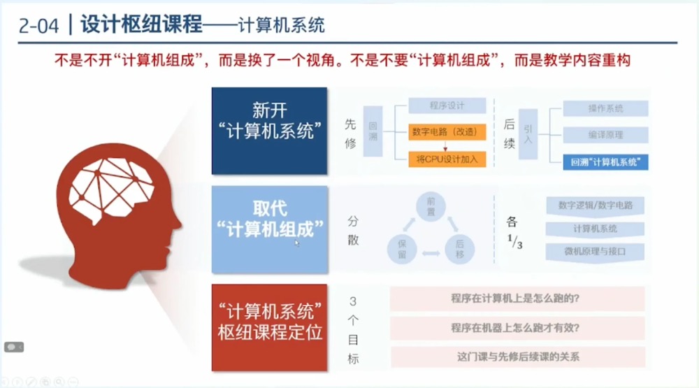 这一变化的核心目的,不是不开“计算机组成”,而是换了一个视角。不是不要“计算机组成”,而是教学内容重构。