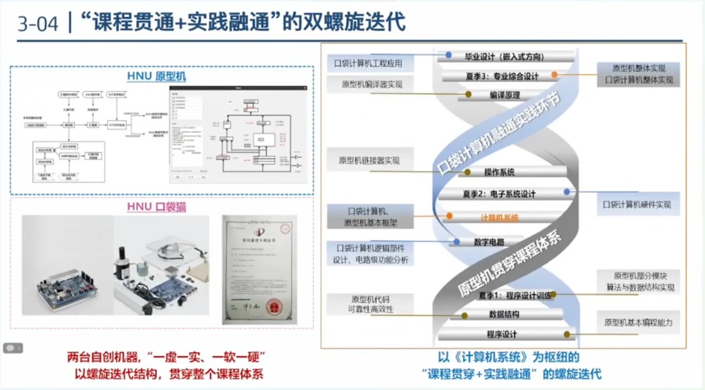 以原型机贯穿课程体系,以口袋计算机融通实践环节,“课程贯穿+实践融通”的螺旋迭代。