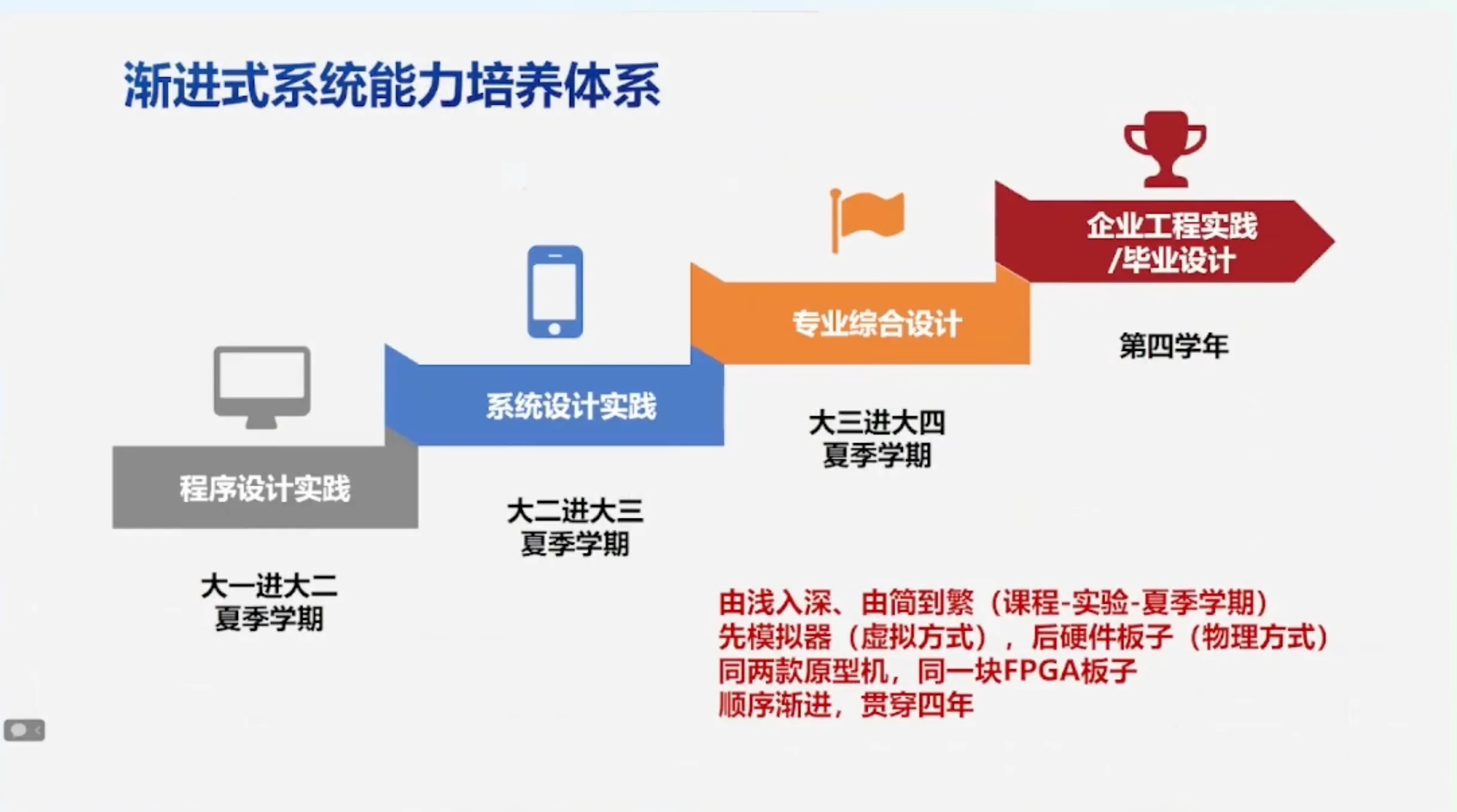 - 一套人才培养教学体系:面向系统能力,全过程可跟踪,可追溯。