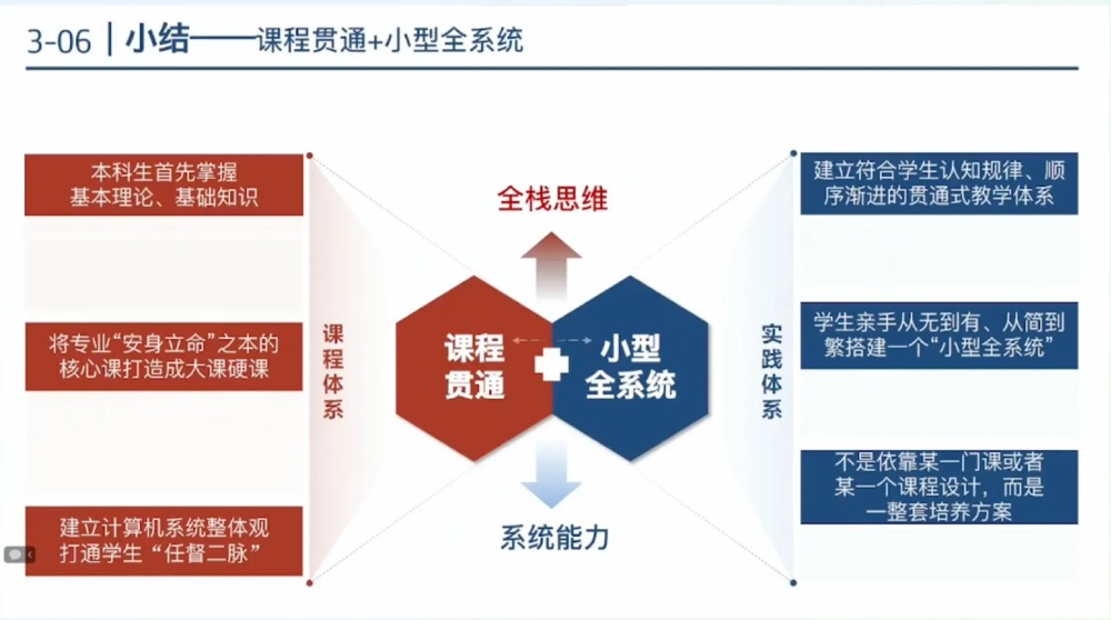 应系统性重构课程体系和重塑实践体系,着力培养具体全栈思维和系统能力的工科人才。
