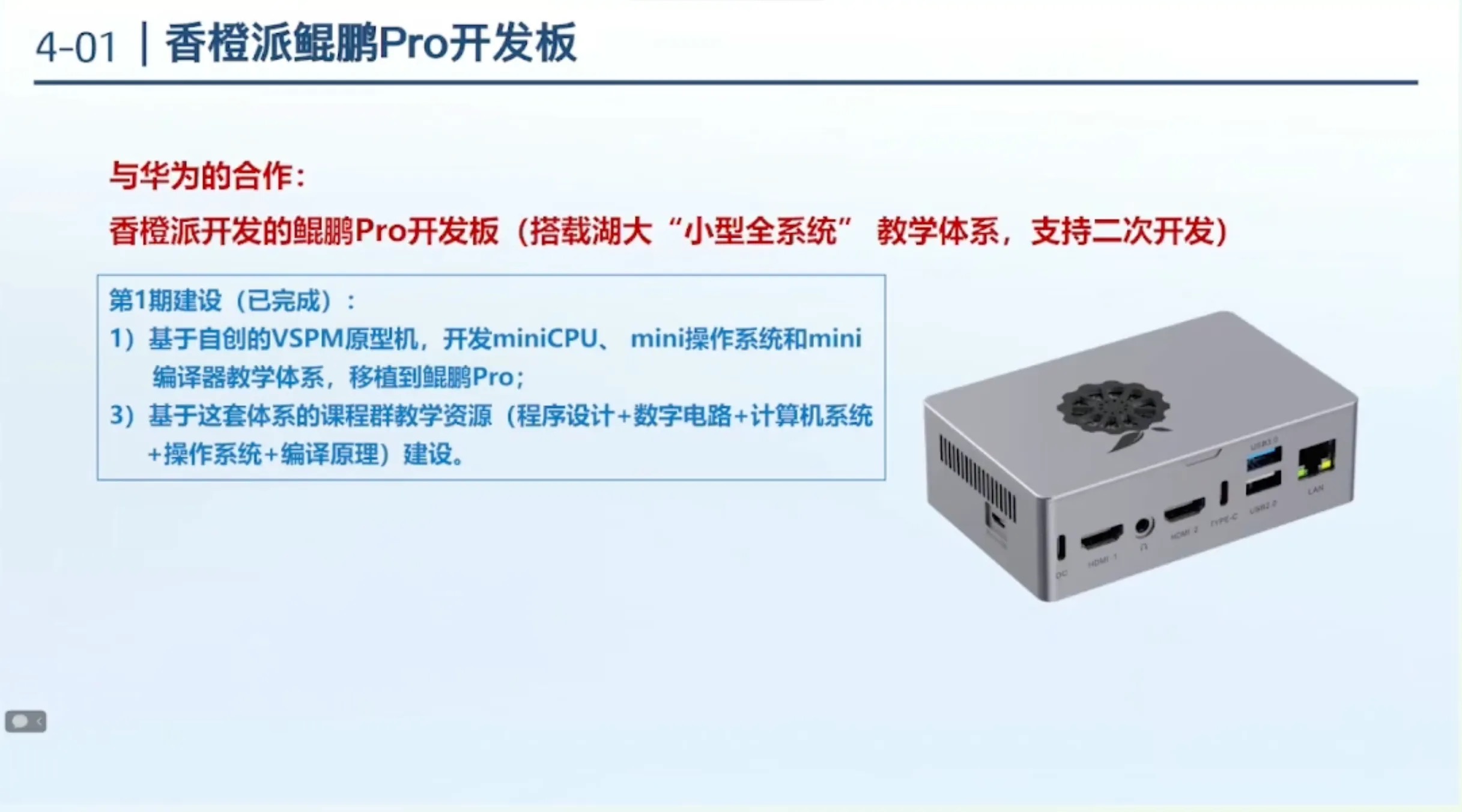 香橙派开发的鲲鹏Pro开发板(搭载湖大“小型全系统”教学体系,支持二次开发)。