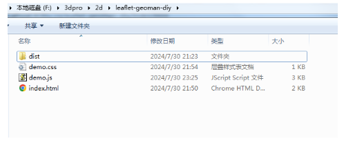 在进行geoman自由标绘的时候,我们首先将需要的资源准备好。由于使用的Leaflet组件,因此我们将Leaflet需要的css和javascript文件拷贝到资源目录中。关于geom依赖的css和javascript,在前面的内容中有所涉及。