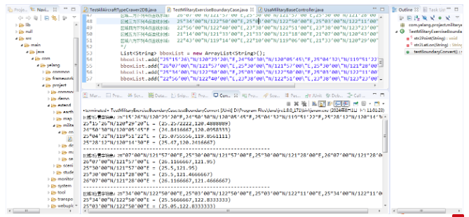 将点从区域点字符串提取出来之后,我们需要将数据进行提取和转换两个步骤。提取是按照/将字符进行分割,而转换是将度分秒的数据转换为标准的经纬度数据。关键代码如下: