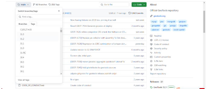 关于GeoTools的Maven依赖问题,由于GeoTools工程项目的相关包不是都在Maven的中央仓库中的,因此我们在配置它的Maven依赖来就跟普通的工程是不一样的。关于GeoTools的maven依赖,其它的很多博主也有相应的文章进行介绍。这里就不再进行赘述。需要申明的是,博客编写过程中,我们的JDK使用的1.8的版本,而对应的Geotools我使用的是28.2的版本。现在Geotools的最新版本应该到31了,大家感兴趣可以到Github中查看一下GeoTools的官方仓库的信息。