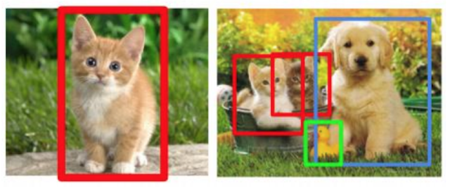 • 目标检测:定位目标,确定目标是什么以及位置(图b)