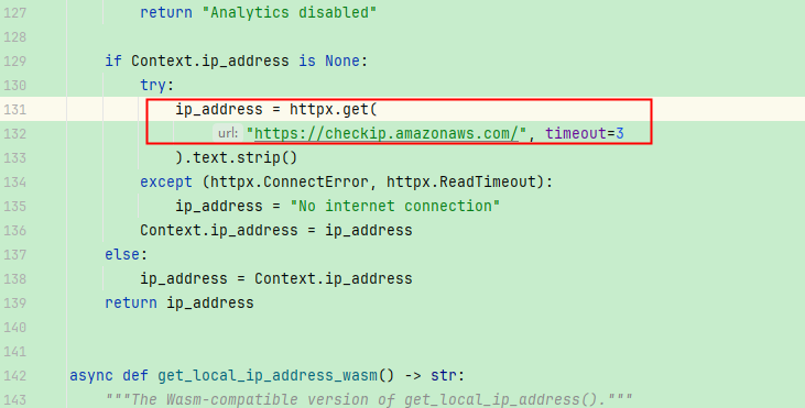 根据代码分析,发现时gradio会启动一个线程,对 https--://--checkip.amazonaws.com/ 发起了请求,导致了该问题,由于是另外启动一个线程,不在主线程内,所以主线程捕获没用。