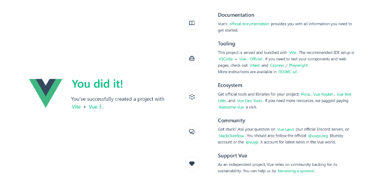 这是vue给我们的初始页面,这样很多东西就不需要我们自己去配置,直接下载到本地直接用就可以了,这种东西我们称为脚手架。