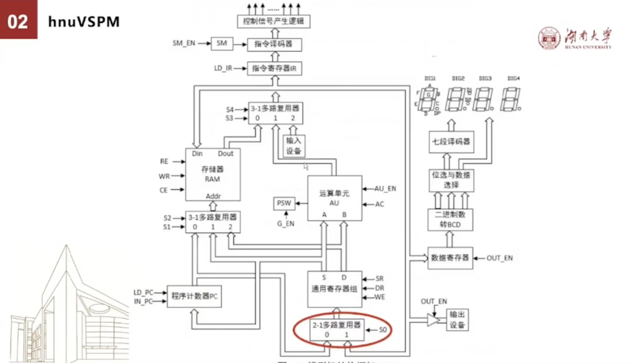 我们从全的方面来讲,虽然我们很小,但个能是齐全的。在教学的时候,我们会从两个层面来说明,一个是我们现在用的笔记本电脑、平板、手机都是冯若伊曼体系结构。我们这一个设计的这个原型机,它实际上也有输入输出,也有运算存储和控制,所以它是一个全的一个系统。另外这个里面只有做加法和减法,但是我们有跳转指令,那么乘法和除法也可以。