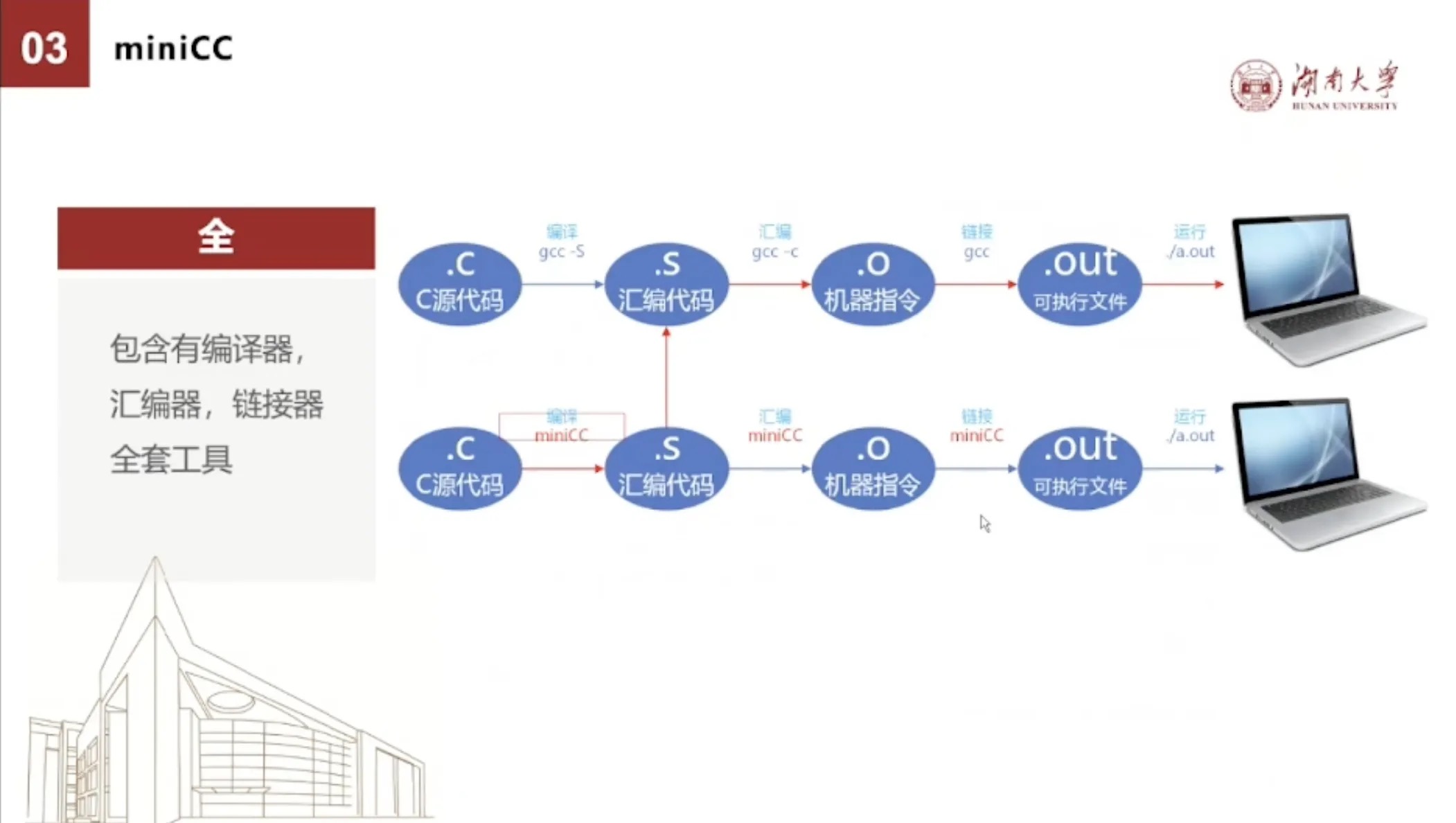 miniCC工具链是一个比较复杂的工具链。我们还是按照一步一个台阶的教这个方式来进行教学。