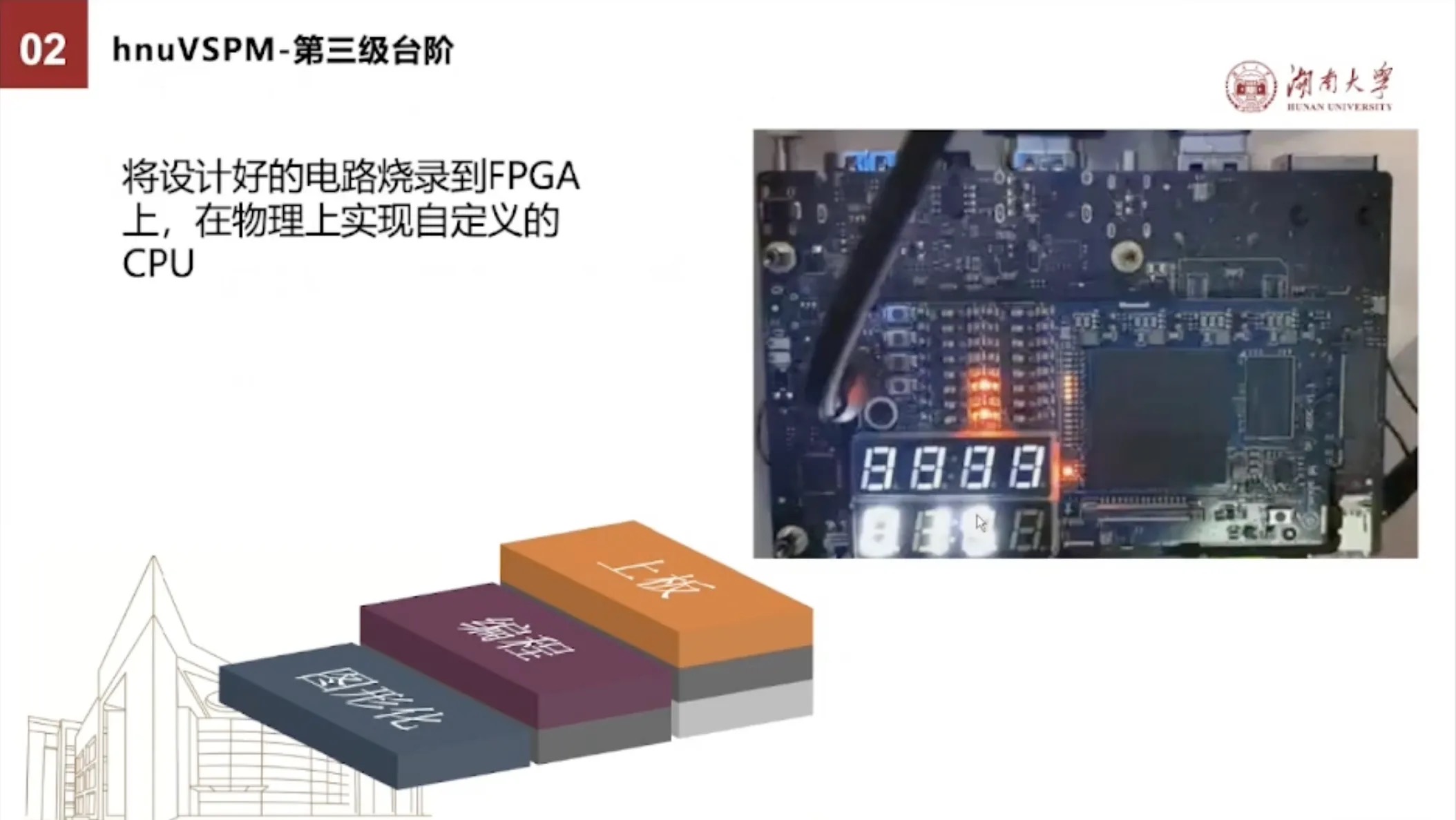 第三个台阶就是我们把设计好的电路烧录到FPGA上,实现一个物理意义上真正的运行的CPU。
