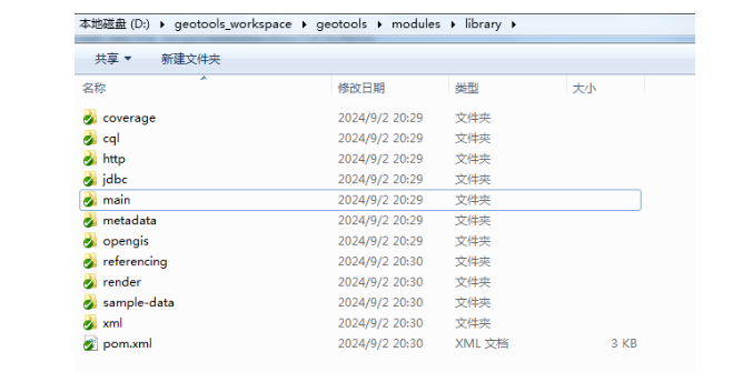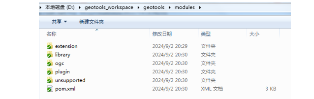 在Geotools的各功能模块中,它的主要源代码是放在modules这个目录下面的。我们打开modules这个文件夹,就可以看到它的子包。