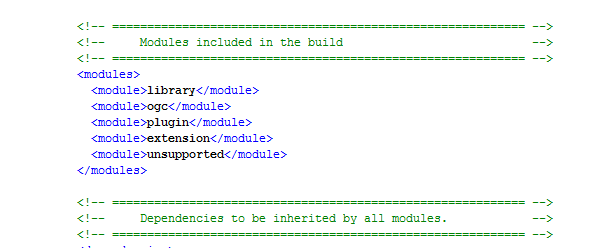 可以看到,这个Geotools的模块划分与我们在博客的开始讲到的知识是基本一致的。我们可以打开它的Pom.xml来进行进一步的查看划分。