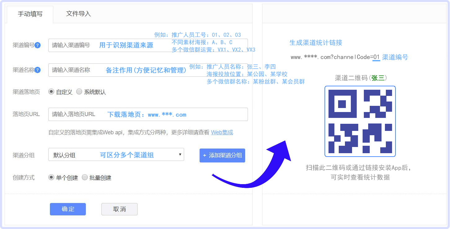 场景:你在openinstall后台创建好N个码后,向每个推广员派发专属二维码,通过考核每个推广员带来了多少用户,来统计其工作成果,帮助企业与团队统计每位推广员的工作数据,让成果用数据说话。