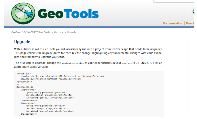 在GeoTools的官方网站中,在软件升级的相关章节中对GeoTools与Jdk的版本对应关系进行了详细的介绍。在清单式的内容介绍中,让我们了解了其兼容情况.GeoTools的升级指南.