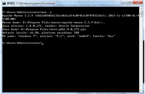 Maven 版本,在本机我们采用的Maven3.3.9版本的,使用mvn -v 命令来查看。