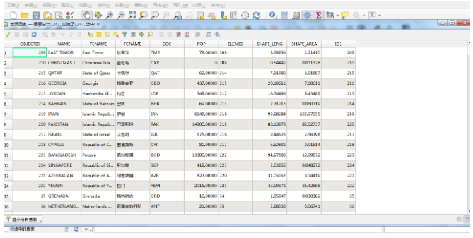 打开矢量数据的属性信息表,首先来大致了解一下这份数据对应的属性信息列表。