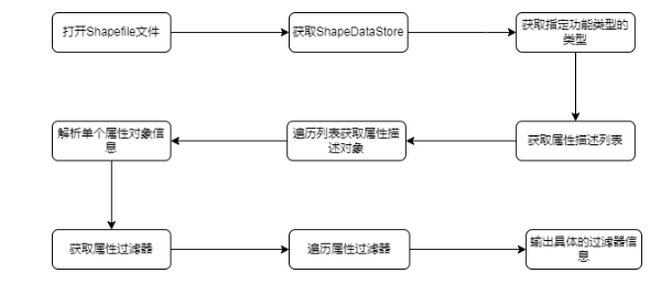 首先讲解普通的解析方法,同时这种解析的方式在互联网或者很多博客当中是最常见的。也就是直接解析shp文件。具体的解析步骤流程如下所示: