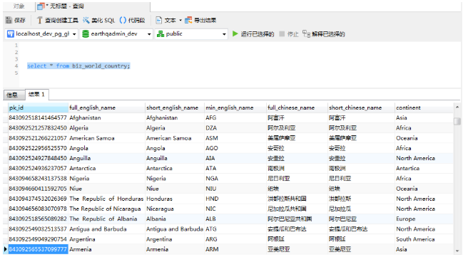 在之前的博客中,我们基于GeoTools工具实现了全球各个国家的空间信息和属性信息的空间入库实战。也将各个国家的基本信息进行了简单的介绍。我们先来看一下在空间数据库中,我们管理的属性信息字段,如下图所示: